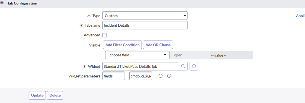 This article describes how to display additional fields in the Standard Ticket page of Employee Center. The end result is a tab like the Incident Details tab below